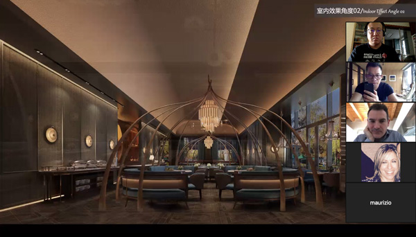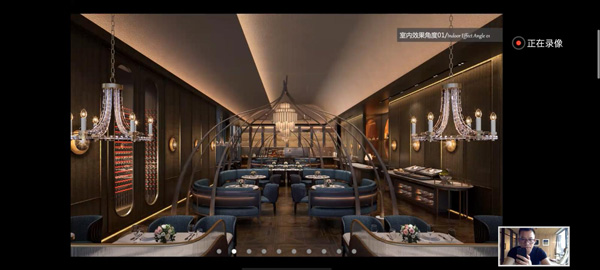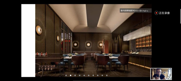 他將自己親自主持設(shè)計的深圳高端餐飲品牌——都一樂斯項(xiàng)目進(jìn)行講解!從接到項(xiàng)目初期到規(guī)劃設(shè)計,找到設(shè)計靈感來源,再如何把靈感從抽象到具象落地呈現(xiàn)到項(xiàng)目的整個過程,向國際設(shè)計交流會議進(jìn)行講解和展示!他認(rèn)為設(shè)計師對美會有獨(dú)特的眼光和遠(yuǎn)見,濃縮凝聚成獨(dú)有品味呈現(xiàn)在設(shè)計作品中!屏幕下,隔空能感受到國際設(shè)計師對該項(xiàng)目作品頗感興趣和熱情,對設(shè)計方案贊賞有佳!